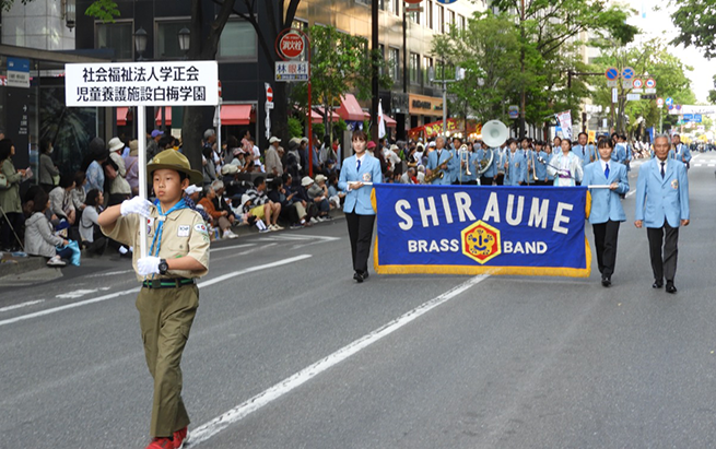学正会ブラスバンド部は、「音楽で地域に貢献すること」をテーマに、地域祭りなどへ積極的に参加しています。